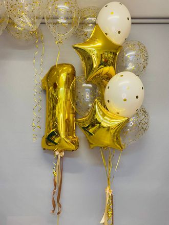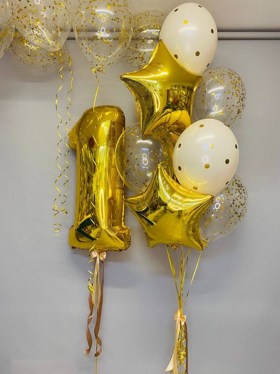 Все шарики с обработкой для долгого полета и надуты гелием. Цифры и цветовая гамма набора подбираются по вашему желанию.