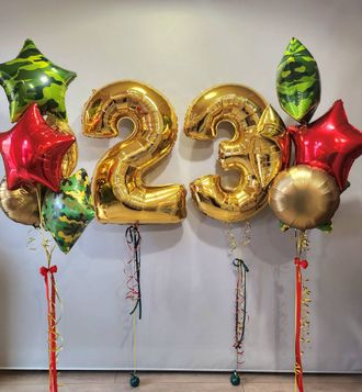 Набор воздушных шаров для украшения праздника "23 февраля" в Краснодаре. Такой набор - отличный вариант для презента любимым защитникам, а для большого праздника композиция может послужить стильной праздничной фотозоной.