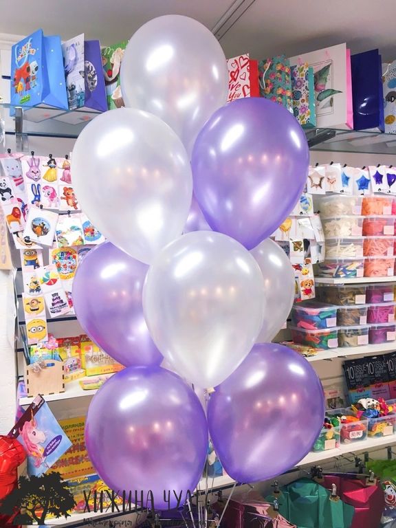 Очаровательный набор из воздушных шаров в белых и сиреневых перламутровых оттенках. Такая связка - отличный подарок для девочки или молодой девушки. Украсит любой праздник и подарит волшебное настроение. Цветовую палитру можно изменить по вашему желанию.