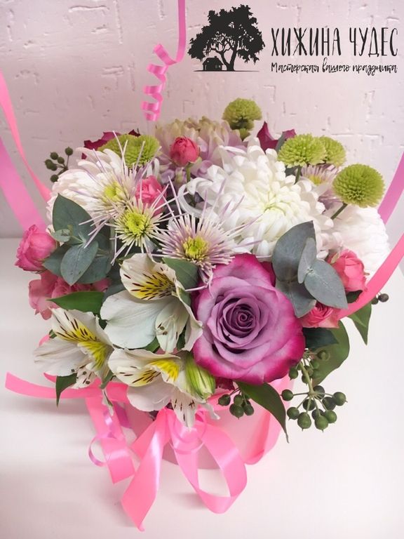 Нежная цветочная композиция в стильной шляпной коробке -
