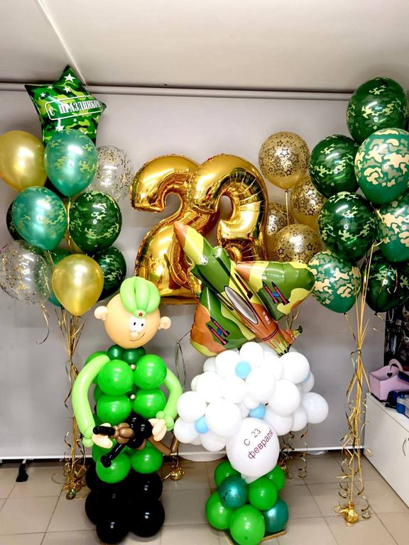 Набор воздушных шаров для 23 февраля в Краснодаре. Композиция из воздушных шаров отлично подойдет в качестве подарка на 23 февраля, а также на тематический праздник или в качестве элемента оформления.