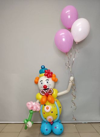 Композиция надута воздухом, в руке клоуна 3 шара гель. Полностью ручная работа.