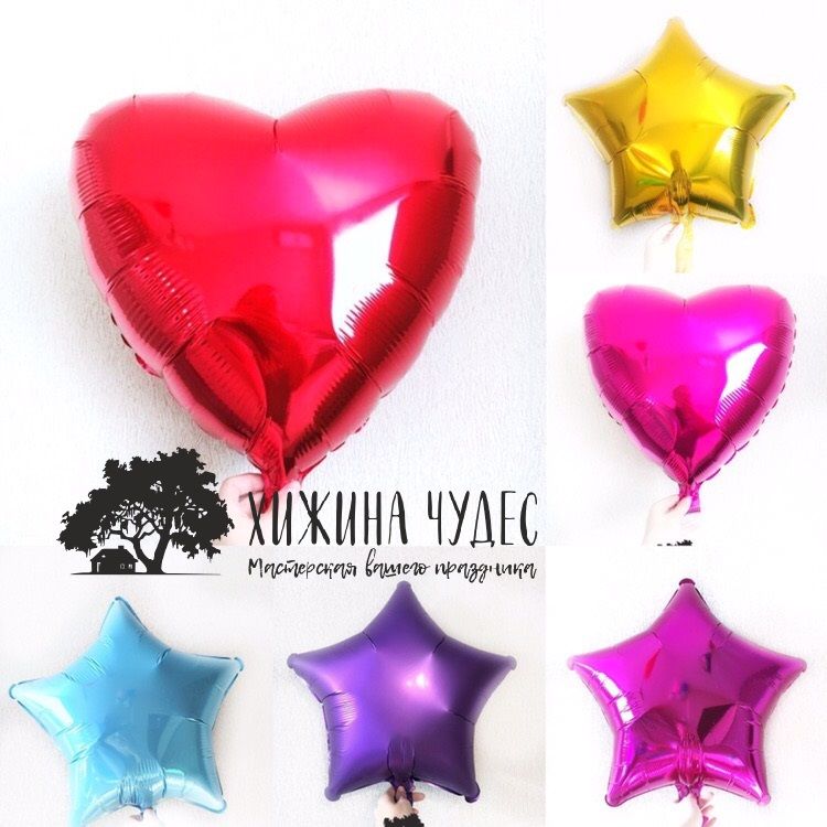 Фольгированные воздушные шары в Краснодаре. Звезды, сердца и круги. Отлично подходят для украшения праздника, сюрприза на торжество, подарка. Хорошо смотрятся в композициях с обычными латексными шарами и шарами-цифрами. Также на фольгированных шариках можно сделать индивидуальную надпись или написать пожелания.