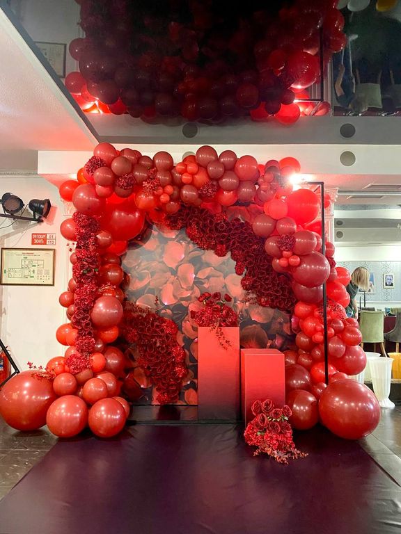 Фотозона в Краснодаре. Фотозона из воздушных шаров с добавлением красных роз, является отличным вариантом современного оформления праздника. Фотографии будут незабываемыми и произведут фурор.