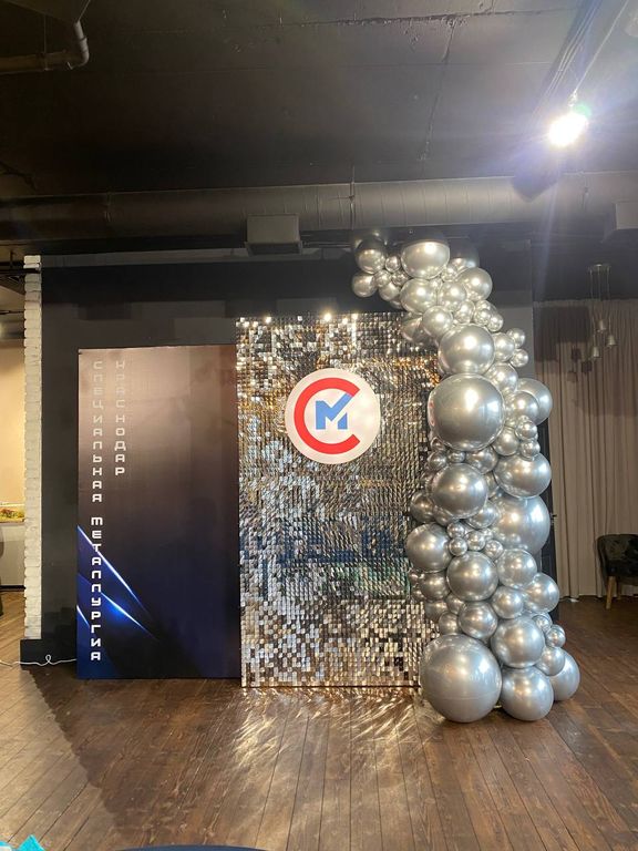 Разнокалиберная гирлянда из шаров с пайетками, круг с логотипом, баннер