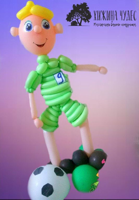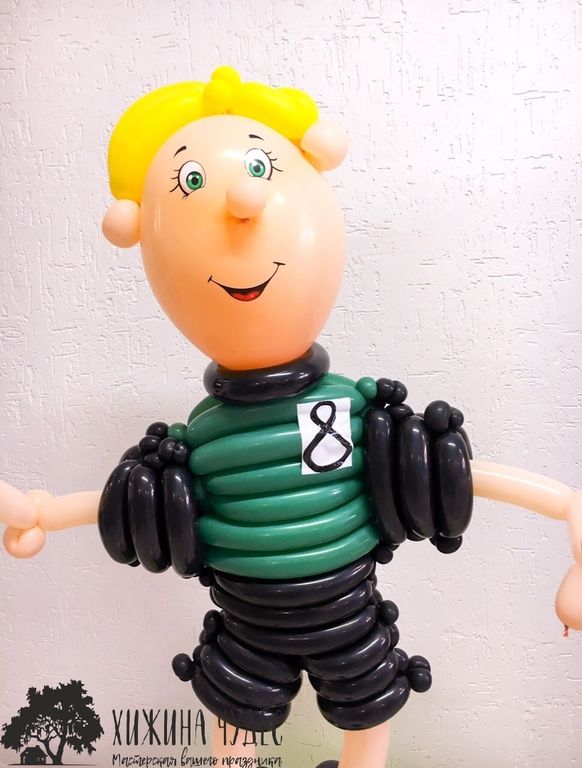 Футболист из воздушных шаров Краснодар. Крутой футболист с мячом станет отличным подарком на любой праздник для мальчика или мужчины. Номер на форме футболиста может соответствовать возрасту именинника.