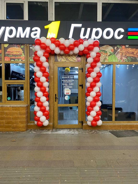 Классическая прямая гирлянда из воздушных шаров на каркасе. Идеально подходит, чтобы акцентировать внимание на входе в заведение или магазин. Также, гирлянда может скрыть погрешности в помещении (щели,провода и т.д.)