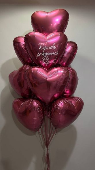 - Связка из 10 фольгированных сердец (одно сердце с индивидуальной надписью)