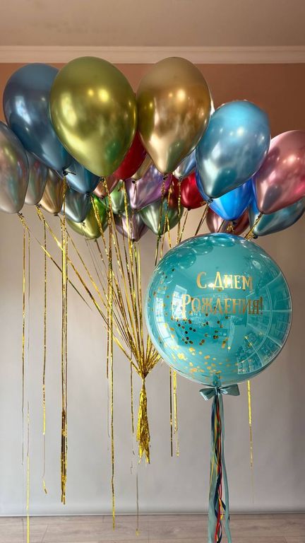 - 23 разноцветных шара хром с дождиком