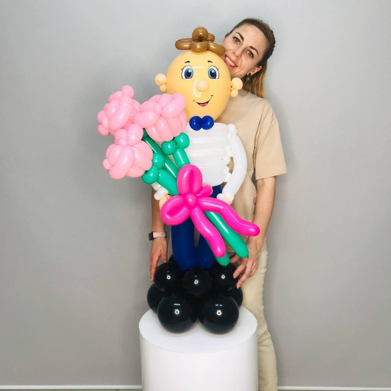 Композиция надута воздухом, стоит на подставке из воздушных шаров. Полностью ручная работа.
