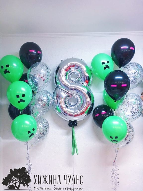 Набор воздушных шаров в стиле майнкрафт купить в Краснодаре.
