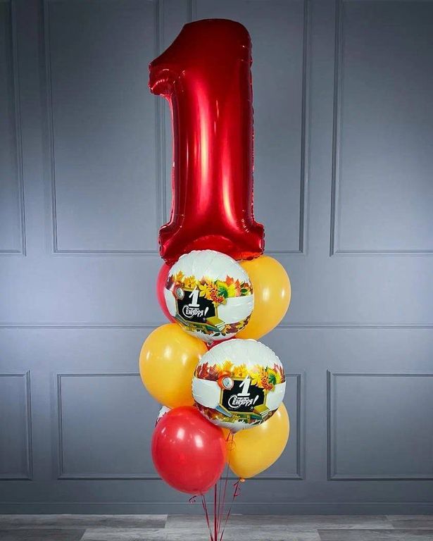- связка тематических шаров с гелием: фольгированная цифра, 3 фольгированных круга, 3 латексных шара, грузик