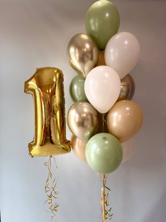 Все шарики с обработкой для долгого полета и надуты гелием. Цифры и цветовая гамма набора подбираются по вашему желанию.