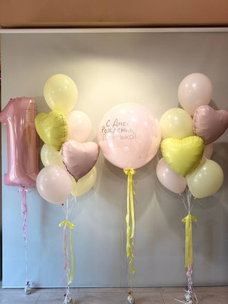 Нежный набор воздушных шаров для девочки в Краснодаре. Такой сет - идеальный вариант для детского праздника, украшения детской комнаты и поднятия праздничного настроения.