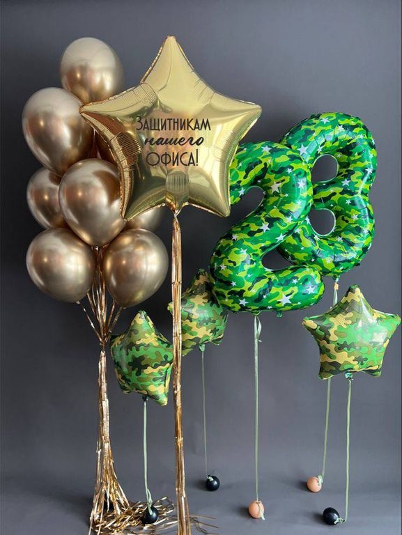 Набор воздушных шаров для 23 февраля в Краснодаре. Композиция из воздушных шаров отлично подойдет в качестве подарка на 23 февраля, а также на тематический праздник или в качестве элемента оформления.