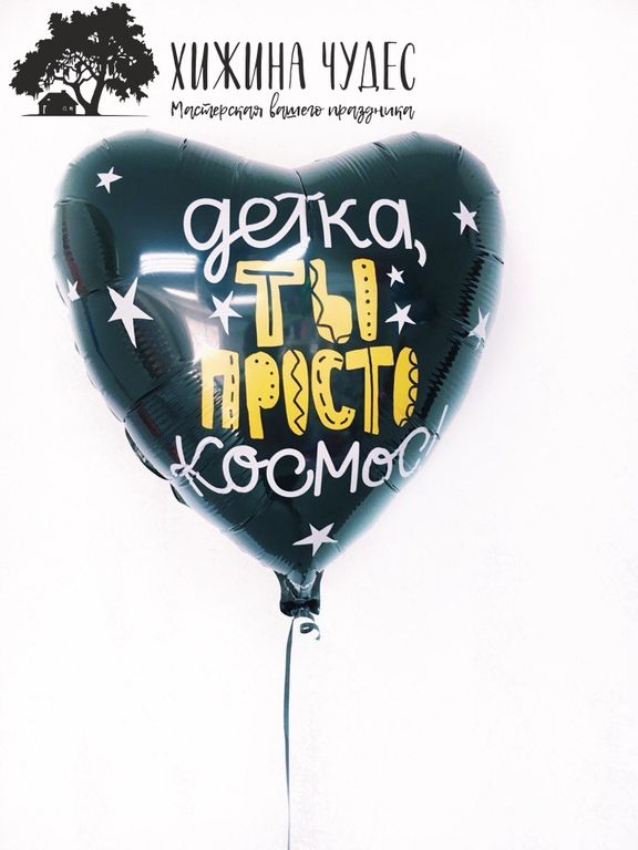 Воздушный шар с надписью "Детка, ты просто космос" в Краснодаре. Ищете стильный подарок? Тогда такое сердечко с модным принтом - то, что вам нужно. Сюрприз для самых космических людей!