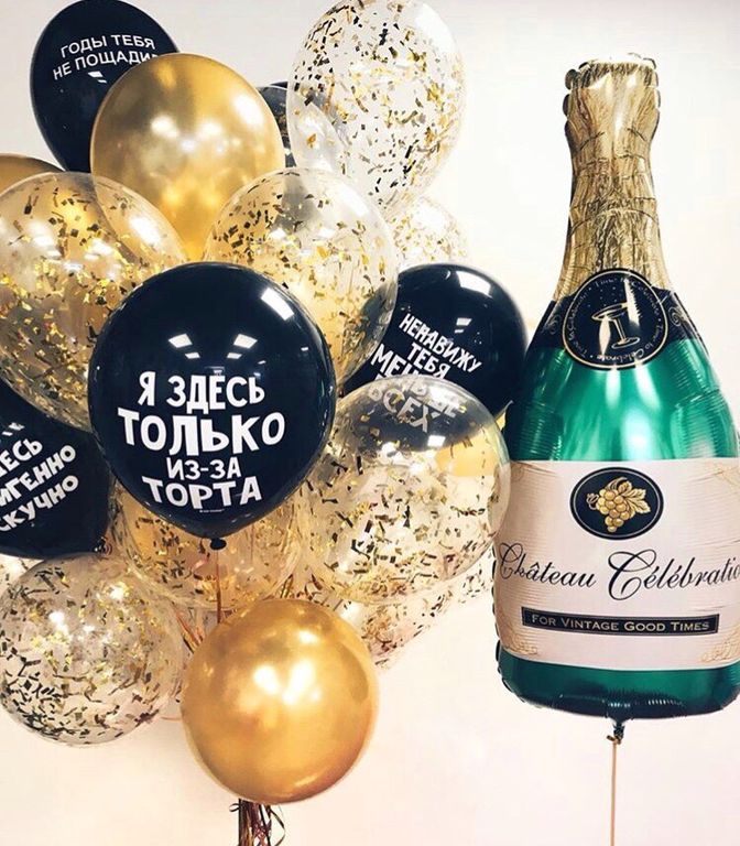 Воздушный шарик в виде бутылки шампанского - для любителей необычных и интересных подарков! Такое игристое веселит и голова на утро не болит :) Фигурный шар - идеальный вариант для дополнения к сюрпризу, а еще он может служить отличным аксессуаром для фотосессии на девичнике, свадьбе, юбилее.