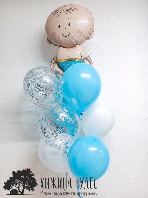 Воздушный шар малыш на выписку в Краснодаре. Отлично подходит для встречи малыша из роддома и подарка. Хорошо смотрится в композициях с обычными латексными шарами и другими фольгированными шариками.