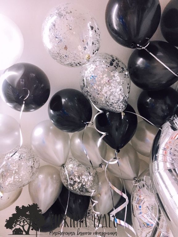 Самый популярный набор воздушных шаров в Краснодаре на день рождения. Черный и серебряный цвет - подойдет всем любителям оригинальных решений. Такой сет вы можете заказать в подарок или для украшения квартиры. Состав набора читайте в описании.