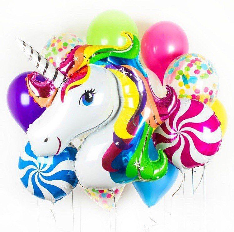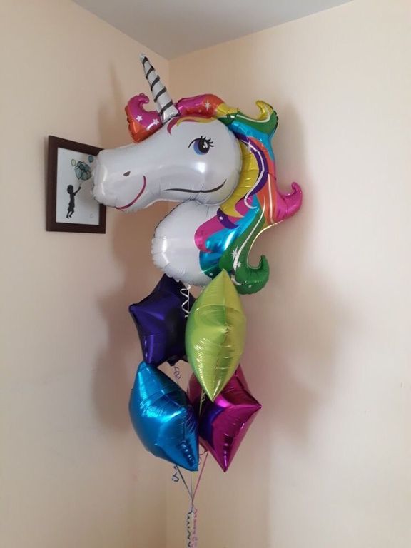 Большой и яркий воздушный фольгированный шар в форме очаровательного единорога. Такой сказочный подарок приятно обрадует всех на празднике. Отлично смотрится в композициях с обычными латексными шарами.