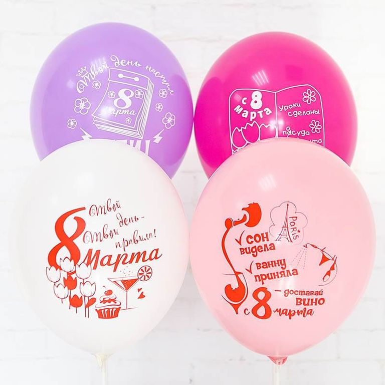 Воздушные шары на 8 марта с прикольными надписями купить в Краснодаре. Яркие шарики с забавными рисунками и надписями-шутками. Их можно подарить в дополнение к подарку или букету тюльпанов. И помните золотое правило: "В этот праздник внимания, цветов и комплиментов много не бывыет" ;)