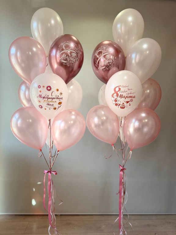 Набор воздушных шаров на 8 марта в Краснодаре. Композиция из воздушных шаров отлично подойдет в качестве подарка на 8 марта, а также на тематический праздник или в качестве элемента оформления.