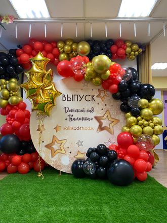 Круглая фотозона на выпускной с баннером. Диаметр баннера 2 метра.