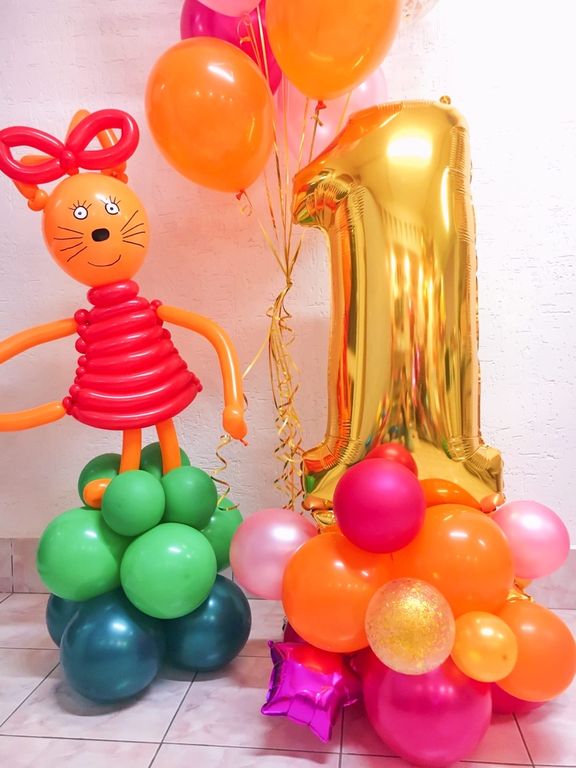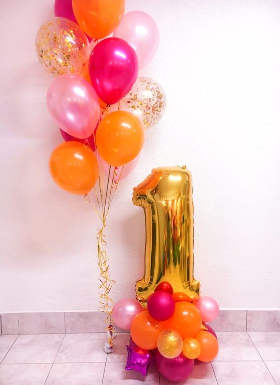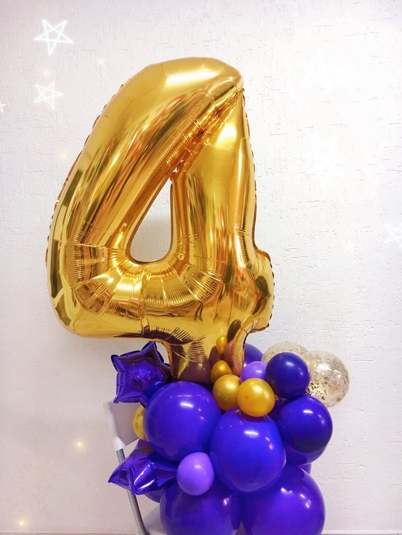 Фольгированный воздушный шар цифра на декорированной подставке из малых воздушных шаров. Такая напольная композиция - отличный вариант для украшения праздника и фотосессии. Цифра любая на выбор. Подробнее читатйте в описании.