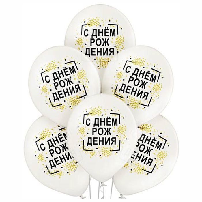 Белые воздушные шары с надписью "С днем рождения" купить в Краснодаре. Такие шарики - отличный вариант для праздника. Сочетание белого, золотого и белого цвета на шаре - классика, которая всегда в моде.
