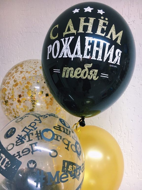 Черные воздушные шары с надписью "С днем рождения тебя" купить в Краснодаре. Такие шарики - отличный вариант для взрослого праздника. Сочетание черного, золотого и белого цвета на шаре - классика, которая всегда в моде.