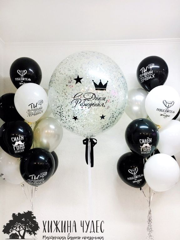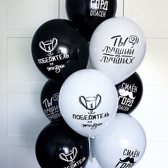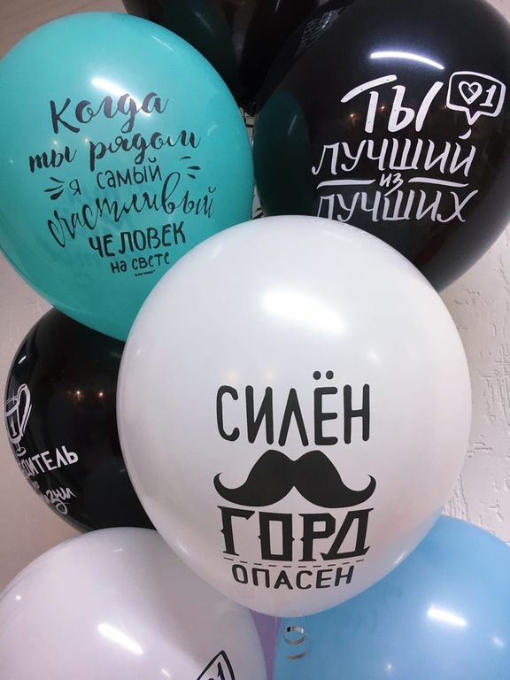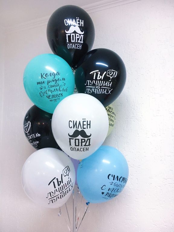 Стильные шарики с прикольными надписями для мужчин в Краснодаре. Из шаров с комплиментами можно собрать интересный набор, добавив обычных воздушных шаров в цвет и парочку фольгированных. Такой фонтан - интересный подарок на любой праздник, а также необычная деталь для фотосессии.