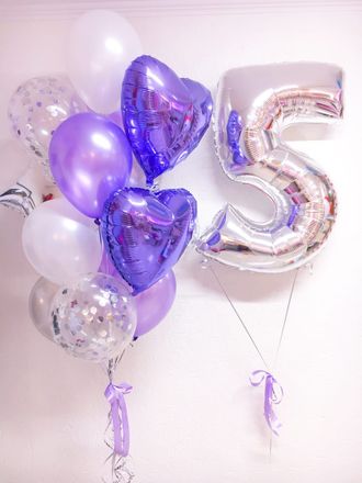 Нежный набор воздушных шаров в оттенках цветка фиалки. Такой сет отлично подойдет для подарка на день рождения девочке или девушке. Цифра любая на выбор. Подробности в описании.