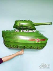 Воздушный шар фигура танк с надписью "За Родину!" купить в Краснодаре.