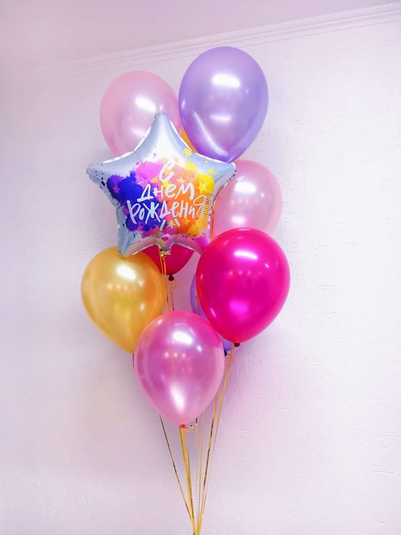 Воздушный шар звезда с ярким рисунком и надписью "С днем рождения" в Краснодаре.