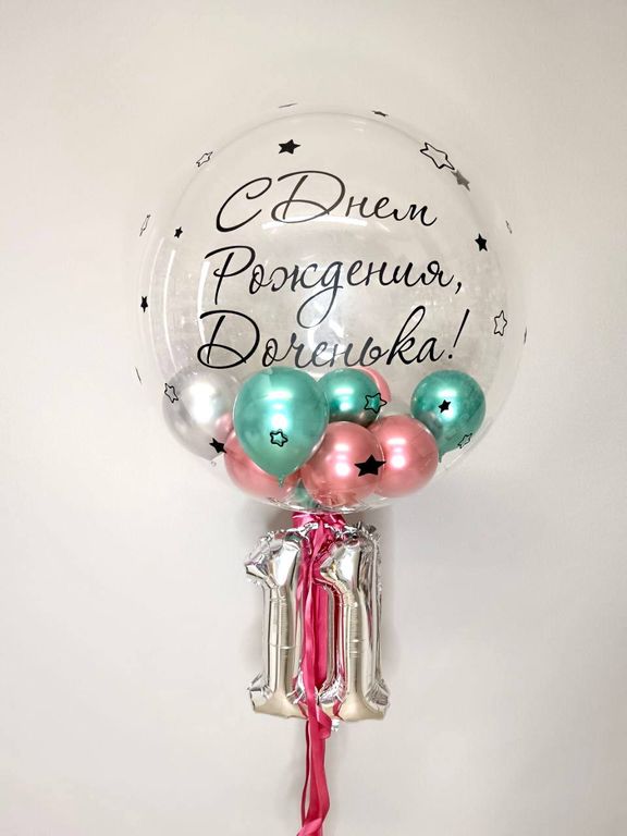 Шар баббл с наполнением в виде маленьких шариков и индивидуальная надпись. + Маленькие цифры 40 см